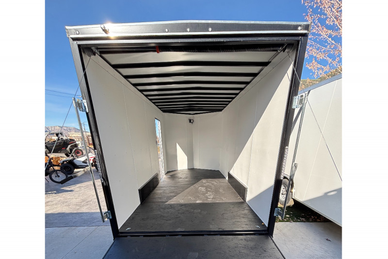 Features Frame: Tubular construction with a powder coat finish for durability. Exterior: Smooth, screwless .030-gauge aluminum sheeting. Roof: Seamless, 1-piece aluminum roof. Lighting: LED lights for visibility and longevity. Front: 24-inch V-nose for aerodynamic design and added cargo space. Stone Guard: A 24-inch tall stone guard to protect the front of the trailer from road debris.